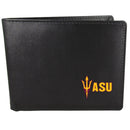 Sports fans do not have to sacrifice style with this classic bi-fold wallet that sports a Arizona St. Sun Devils emblem. This men's fashion accessory has a leather grain look and expert craftmanship for a quality wallet at a great price. The wallet features inner credit card slots, windowed ID slot and a large billfold pocket. The front of the wallet features a printed team logo.Officially licensed College product Licensee: Siskiyou Buckle. Classy leather like texture. Credit card slots, windowed ID slot and large billfold pocket. Fashionable and affordable men's accessory. Printed Arizona St. Sun Devils logo