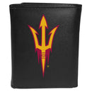 Sports fans do not have to sacrifice style with this classic tri-fold wallet that sports theArizona St. Sun DevilsÊextra large logo. This men's fashion accessory has a leather grain look and expert craftmanship for a quality wallet at a great price. The wallet features inner credit card slots, windowed ID slot and a large billfold pocket. The front of the wallet features an extra large printed team logo. Officially licensed College product. Classy leather like texture. Credit card slots, windowed ID slot and large billfold pocket. Fashionable and affordable men's accessory. Extra large Arizona St. Sun Devils logo