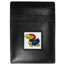 Our officially licensed Money Clip/Card Holders won't make you choose between paper or plastic because they stow both easily. Features our sculpted and enameled Kansas Jayhawks emblem on the front of the wallet. Officially licensed College product Licensee: Siskiyou Buckle. Genuine fine grain leather wallet. Credit card slots. Magnetic money clip that will not damage your cards. Metal Kansas Jayhawks emblem with enameled team colors