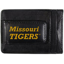 This super slim leather wallet lets you have all the benefits of a money clip while keeping the organization of a wallet. On one side of this front pocket wallet there is a strong, magnetic money clip to keep your cash easily accessible and theÊMissouri Tigers team logo on the front. The versatile men's accessory is a perfect addition to your fan apparel. Officially licensed College product. Geniune leather men's fashion accessory. Slim style wallet with lots of storage. Magnetic money clip on one side and windowed ID slot on the other. Crisp, digital Missouri Tigers logo