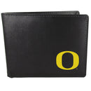 Sports fans do not have to sacrifice style with this classic bi-fold wallet that sports a Oregon Ducks emblem. This men's fashion accessory has a leather grain look and expert craftmanship for a quality wallet at a great price. The wallet features inner credit card slots, windowed ID slot and a large billfold pocket. The front of the wallet features a printed team logo.Officially licensed College product Licensee: Siskiyou Buckle. Classy leather like texture. Credit card slots, windowed ID slot and large billfold pocket. Fashionable and affordable men's accessory. Printed Oregon Ducks logo