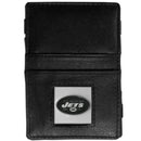 This officially licensed, innovative jacob's ladder wallet design traps cash with just a simple flip of the wallet! There are also outer pockets to store your ID and credit cards. The wallet is made of fine quality leather with a fully cast & enameled New York Jets emblem on the front. Officially licensed NFL product Licensee: Siskiyou Buckle. Genuine fine grain leather wallet. Wallet secures your cash with just a flip. Comes with ID and card slots. Metal New York Jets emblem with enameled team colors