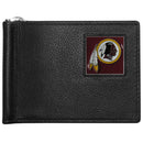 This cool new style wallet features an inner, metal bill clip that lips up for easy access. The super slim wallet holds tons of stuff with ample pockets, credit card slots & windowed ID slot. The wallet is made of genuine fine grain leather and it finished with a metal Washington Redskins emblem. The wallet is shipped in gift box packaging. Officially licensed NFL product Licensee: Siskiyou Buckle. Genuine fine grain leather wallet. Metal, flip out bill clip. Slim style wallet with lots of storage. Metal Washington Redskins emblem with enameled team colors
