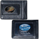 Our Anaheim Ducks genuine leather cash & cardholder is a great alternative to the traditional bulky wallet. This compact wallet has credit card slots, windowed ID slot and a magnetic money clip that will not damage your credit cards. The wallet features a metal team emblem. Officially licensed NHL product Licensee: Siskiyou Buckle. Genuine fine grain leather wallet. Slim style wallet with lots of storage. Windowed ID slot and magnetic money clip that will not damage your cards. Metal Anaheim Ducks emblem with enameled team colors