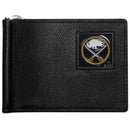 This cool new style wallet features an inner, metal bill clip that lips up for easy access. The super slim wallet holds tons of stuff with ample pockets, credit card slots & windowed ID slot. The wallet is made of genuine fine grain leather and it finished with a metal Buffalo Sabres emblem. The wallet is shipped in gift box packaging. Officially licensed NHL product Licensee: Siskiyou Buckle. Genuine fine grain leather wallet. Metal, flip out bill clip. Slim style wallet with lots of storage. Metal Buffalo Sabres emblem with enameled team colors