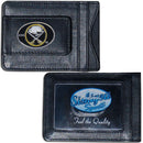 Our Buffalo Sabres genuine leather cash & cardholder is a great alternative to the traditional bulky wallet. This compact wallet has credit card slots, windowed ID slot and a magnetic money clip that will not damage your credit cards. The wallet features a metal team emblem. Officially licensed NHL product Licensee: Siskiyou Buckle. Genuine fine grain leather wallet. Slim style wallet with lots of storage. Windowed ID slot and magnetic money clip that will not damage your cards. Metal Buffalo Sabres emblem with enameled team colors