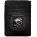 Our officially licensed Money Clip/Card Holders won't make you choose between paper or plastic because they stow both easily. Features our sculpted and enameled Buffalo Sabres emblem on the front of the wallet. Officially licensed NHL product Licensee: Siskiyou Buckle. Genuine fine grain leather wallet. Credit card slots. Magnetic money clip that will not damage your cards. Metal Buffalo Sabres emblem with enameled team colors