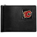 This cool new style wallet features an inner, metal bill clip that lips up for easy access. The super slim wallet holds tons of stuff with ample pockets, credit card slots & windowed ID slot. The wallet is made of genuine fine grain leather and it finished with a metal Calgary Flames emblem. The wallet is shipped in gift box packaging. Officially licensed NHL product Licensee: Siskiyou Buckle. Genuine fine grain leather wallet. Metal, flip out bill clip. Slim style wallet with lots of storage. Metal Calgary Flames emblem with enameled team colors