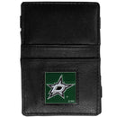 This officially licensed, innovative jacob's ladder wallet design traps cash with just a simple flip of the wallet! There are also outer pockets to store your ID and credit cards. The wallet is made of fine quality leather with a fully cast & enameled Dallas Stars emblem on the front. Officially licensed NHL product Licensee: Siskiyou Buckle. Genuine fine grain leather wallet. Wallet secures your cash with just a flip. Comes with ID and card slots. Metal Dallas Stars emblem with enameled team colors