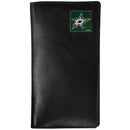 Our officially licensed tall leather wallet cover is made of high quality leather with a fully cast metal Dallas Stars emblem with enameled team color detail. The cover fits both side and top loaded checks and includes a large zippered pocket, windowed ID slot, numerous credit card slots and billfold pocket. Officially licensed NHL product Licensee: Siskiyou Buckle. Genuine fine grain leather wallet. Fits top and side loaded checkbooks. Credit card slots, windowed ID slot and large zippered pocket. Metal Dallas Stars emblem with enameled team colors