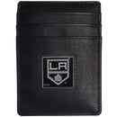 Our officially licensed Money Clip/Card Holders won't make you choose between paper or plastic because they stow both easily. Features our sculpted and enameled Los Angeles Kings emblem on the front of the wallet. Officially licensed NHL product Licensee: Siskiyou Buckle. Genuine fine grain leather wallet. Credit card slots. Magnetic money clip that will not damage your cards. Metal Los Angeles Kings emblem with enameled team colors