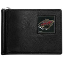 This cool new style wallet features an inner, metal bill clip that lips up for easy access. The super slim wallet holds tons of stuff with ample pockets, credit card slots & windowed ID slot. The wallet is made of genuine fine grain leather and it finished with a metal Minnesota Wild emblem. The wallet is shipped in gift box packaging. Officially licensed NHL product Licensee: Siskiyou Buckle. Genuine fine grain leather wallet. Metal, flip out bill clip. Slim style wallet with lots of storage. Metal Minnesota Wild emblem with enameled team colors