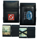 This officially licensed, innovative jacob's ladder wallet design traps cash with just a simple flip of the wallet! There are also outer pockets to store your ID and credit cards. The wallet is made of fine quality leather with a fully cast & enameled New Jersey Devils emblem on the front. Officially licensed NHL product Licensee: Siskiyou Buckle. Genuine fine grain leather wallet. Wallet secures your cash with just a flip. Comes with ID and card slots. Metal New Jersey Devils emblem with enameled team colors