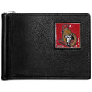 This cool new style wallet features an inner, metal bill clip that lips up for easy access. The super slim wallet holds tons of stuff with ample pockets, credit card slots & windowed ID slot. The wallet is made of genuine fine grain leather and it finished with a metal Ottawa Senators emblem. The wallet is shipped in gift box packaging. Officially licensed NHL product Licensee: Siskiyou Buckle. Genuine fine grain leather wallet. Metal, flip out bill clip. Slim style wallet with lots of storage. Metal Ottawa Senators emblem with enameled team colors