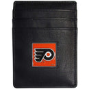 Our officially licensed Money Clip/Card Holders won't make you choose between paper or plastic because they stow both easily. Features our sculpted and enameled Philadelphia Flyers emblem on the front of the wallet. Officially licensed NHL product Licensee: Siskiyou Buckle. Genuine fine grain leather wallet. Credit card slots. Magnetic money clip that will not damage your cards. Metal Philadelphia Flyers emblem with enameled team colors