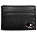 Ditch your bulky wallet! This super slim leather wallet is the perfect weekend companion. The compact design features 2 credit card slots on the front and one on the back and an inner middle pocket for cash. The front of the wallet has a crisp silk screened Philadelphia Flyers logo. Officially licensed NHL product Licensee: Siskiyou Buckle. Genuine fine grain leather wallet. 3 credit card slots, inner pocket for cash. Super slim wallet. Philadelphia Flyers silk screened logo