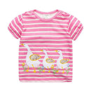 Cotton Stripe Short Sleeve Three Pretty Gooses Embroidered Slim Fit T-Shirts Animal Design Latest Tops For Designs Girls