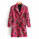 Creative Red Flower Printed Women Defined Waist Medium Length Blazer