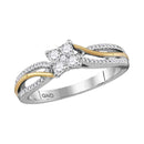 10kt Two-tone Gold Women's Round Diamond Cluster Promise Bridal Ring 1/4 Cttw