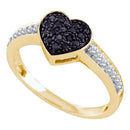 10k Yellow Gold Women's Black Color Enhanced Round Diamond Heart Cluster Ring 1/3 Cttw