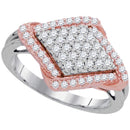 Description 10kt White Gold Women's Round Diamond Pink-tone Frame Diagonal Square Cluster Ring 1/2 Cttw Gemstone Details 1/2 Carats total weight Specifications 10kt White Gold _Combined diamond weight of 1/2 carats total weight represents a range of 0.46 - 0.58 cts. t.w.