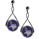 OurÊMinnesota VikingsÊare a sporty twist on the classic tear drop earrings. The high polish dangle earrings feature the team logo in raised metal against the primary team color inset into the 2 inch tear drop setting. The earrings have hypoallergenic stud posts. Officially licensed NFL product Licensee: Siskiyou Buckle. Hypoallergenic posts. Classic teardrop style with flourish. Perfect for game day, nice enough for everyday. High polish Minnesota Vikings emblem with enameled finish
