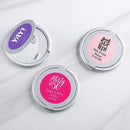 Celebrate another beautiful year with These Personalized Silver Compact Mirror with a Birthday personalized sticker! The sticker rests on the top of the compact makeup mirror, and displayed on it are the details of your special birthday celebration. The silver plastic outer shell of the compact mirror favors keeps the glass mirror safe inside, and remains durable while the mirror is kept inside of a purse or clutch. Each time guests use their compact mirror favors they'll remember the beautiful time they had celebrating with you!Features and Facts: Silver finish plastic compact with single mirror on the inside. Measures approximately 2.5" w x 2.5" h x 0.2" d.Can be personalized with a Birthday sticker design.Minimum order of 24 required for personalization.Some assembly required.Due to personalization, please allow 3-5 business days for processing.