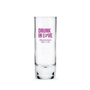 Filled with your signature libation, candy or mini blossom, these personalized tall shot glasses make a festive impression at your reception. Choose your motif, color, and wording for unique wedding favors that really get the party started!