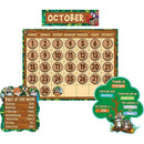 Ranger Rick and his friends help track your days with this calendar bulletin board. Includes easy-to-read number pieces, colorful monthly headers, and additional pieces for holidays and special occasions as well as yesterday, today, and tomorrow. Blank calendar measures 24" x 18". Includes 90 total pieces.