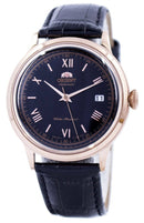 Orient Watches Bambino Series Rose Gold Tone Stainless Steel Case Leather Strap Caliber: F6724 Automatic Self-Winding Movement Domed Mineral Crystal Black Dial 40 Hours Power Reserve Date Indicator Screw Caseback Buckle Clasp 30M Water Resistant Approximate Case Diameter: 40.50mm Approximate Case Thickness: 11.80mm