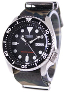 Stainless Steel Case Army NATO Strap 22mm Automatic Movement Caliber: 7S26 21 Jewels Hardlex Crystal Black Dial Unidirectional Bezel Day And Date Display Luminous Hands And Markers Buckle Clasp 200M Water Resistance Approximate Case Diameter: 42mm Approximate Case Thickness: 13mm
