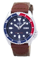Stainless Steel Case Canvas Strap Automatic Movement Caliber: 7S26 21 Jewels Hardlex Crystal Dark Blue Dial Red And Blue Bezel Day And Date Display Luminous Hands And Markers Buckle Clasp 200M Water Resistance Approximate Case Diameter: 42mm Approximate Case Thickness: 13mm