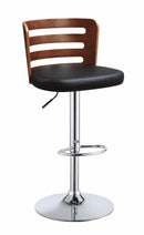 A gorgeous geometrical bentwood backrest in a walnut finish contrasts with the comfortable faux leather black cushion, making this Camila bar stool a stylish addition to your kitchen or bar area. With a chrome base and footrest, this bar stool is designed for durability and comfort and adds a mid-century modern style to any decor.