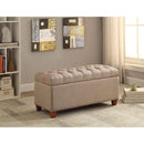 This practically designed Bench will offer a style forward look and a comfortable sitting at once. Featuring a taupe finish, the bench is detailed with a functional concept of providing storage and holds a tufted seat. (Primary Color: Brown)