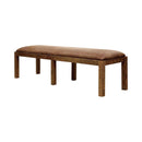 Dine In Rustic Elegance With This Gorgeous Antique-Inspired Bench. The Weathered Pine Finish Of The Entire Set Draws Attention To The Sturdy Solid Wood Framework While Providing The Necessary Support For A Worry-Free Dinner Setting. Bench Feature An Earthy Toned Fabric That Enhances The Wood Elements.