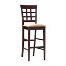 These Lovely Open Grid Bar Height Stools In A Cappuccino Finish (Brown) Will Be A Great Addition To Your Casual Contemporary Dining And Entertaining Ensemble. These Stools Is Constructed From Solid Woods For Durability And Longevity. The Back Of Stools Has An Open Grid Pattern Above High Sleek Square Tapered Legs, For A Distinctive Style. Square Shaped Seat Cushion Is Padded And Covered With Sleek Soft Tan Microfiber. These Stools Also Features A Foot Rest To Provide Comfort For People Of A Variety Of Heights.