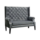 This single loveseat chair comes in a stunning wingback design with smooth flannelette draped over its rolled arms with a neat nailhead trim and an attractive deep shade of grey. it does have Crystal-like Acrylic Buttons on the Backrest of the seat which enhances the beauty of loveseat.