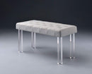 A nice mix of two contrasting materials, this bench features clear acrylic base, which providing sturdy support for the linen cushioned seat. This attractive bench will give any space a hint of elegant charm. Place this chic tufted bench anywhere you need an eye-catching accent or extra seating.