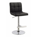 These Adjustable Bar Stools Represents A Retro Modern Style With Modern Updates. Stitched Design Illustrates A Chic Taste And Detailed-Oriented Craftsmanship. Seat Cushion And Backrest Is Upholstered In A Black, Durable Leather-Like Vinyl For Long-Lasting Appeal. Underneath The Seat Is A Lever, Allowing Stools To Extend Height For Easy, Individualized Comfort. A Thick Metal Pedestal And Base With Footrest Complete These Stools, Promising Long-Lasting Support And Durability. Add These Simple, Modern Bar Stools To Your Pub Table Or Bar For A Contemporary Style.