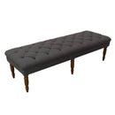This elegantly designed bench would be a perfect addition for your living space. The wooden framework provides durability and sturdiness to the bench. The textured woven fabric upholstered cushion seat with deep button tufting provide utmost comfortable seating experience. The bench had turned wooden legs with light distressed finish which gives it a classic appeal. The dark gray colour upholstery makes it suitable for all kinds of decor. The bench can be used to create additional seating in your living room or add as bed end bench in your bedroom.