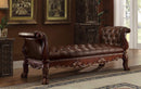 This wooden frame bench is fully upholstered in durable polyurethane leather. It is able to highlight your stylish living room. Decorative nail head trim and carved wooden elements give it a special charm. Excellent craftsmanship with a strong and sturdy construction. It is uniquely designed to be added to your decorative collection. Its simple modern design is sure to enliven your home decor!