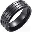 Black Tungsten Carbide Tire Tread Beveled Edges Ring