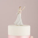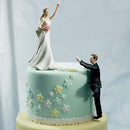 He's climbed the highest mountain... or cake tier! A whimsical yet modern take on "Rapunzel in the Tower" has the groom struggling to scale a cake tier to reach his cheering bride. This unique figurine is held in place with a porcelain peg that has been added to his elbow. Once inserted into the cake it becomes completely undetectable. Mix and match with our other comical interchangeable cake toppers!