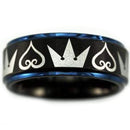 Tungsten Carbide Black Blue Kingdom and Heart Step Edges Ring