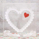 Sleek and modern with a touch of DIY, this simple yet elegant guest book alternative will make a statement at your wedding or on display in your home afterwards. Guests are asked to sign their names on the die cut hearts provided and place them into the shadow box at your reception. The signed hearts will help in creating a unique piece of art that you will enjoy for years to come. Plan to display on a shelf, mantle or hung on a wall in a special location in your home. Includes Die-Cut Heart Stationery (1 red with Stitched Edging, 180 white), Adhesive tape, instructions and tent card.