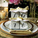 Spell out the reason for your big day with these unique aged boxes. They will create a beautiful display whether stacked together at a favor table or as part of each guests place setting. Nothing says it better than LOVE.