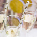 Incredibly cute and utterly stylish, these polka dot metallic print straws are a simple and popular way to serve drinks. Whether on their own or with the addition of personalized flags or die-cut paper slides they will take any cocktail hour from fair to fabulous.