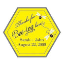 This yellow and black Thanks for Bee-ing here sticker is a perfect addition to a garden theme wedding.
