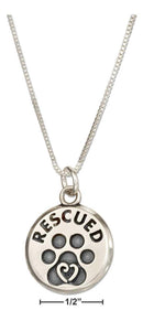 Sterling Silver 18" Paw Print With Heart "rescued" Pendant Necklace