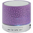 Bluetooth(R) streaming; Lighted; Built-in lithium battery; Volume control; Charge & status indicator; Includes USB cable; Purple;